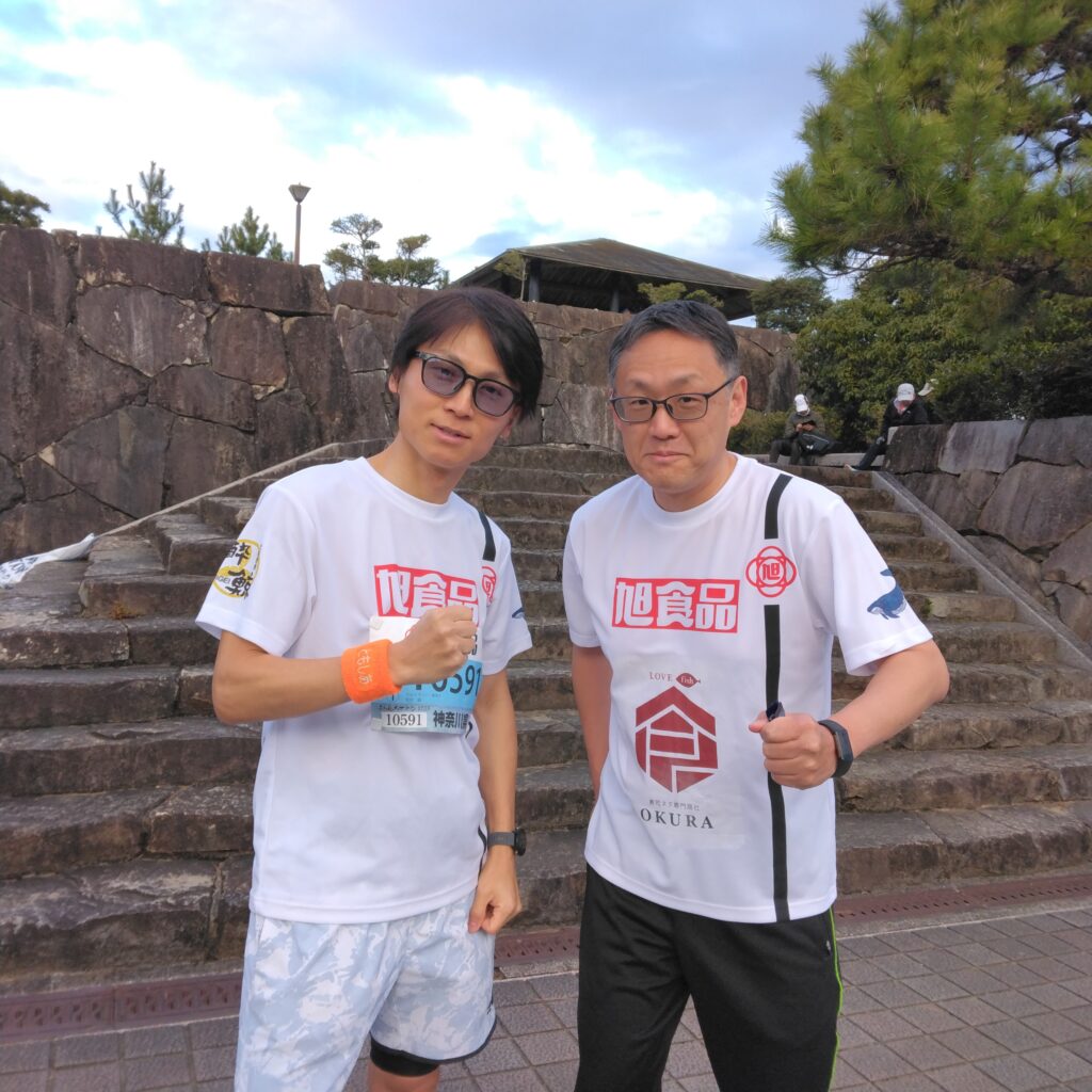 地域貢献と社員の健康増進に寄与する活動として㈱大倉の親会社の旭食品㈱がオフィシャルスポンサーになっています。なんとかスポンサー枠の抽選に当選して仕事とともに足腰鍛え上げる日々を過ごしてきました。