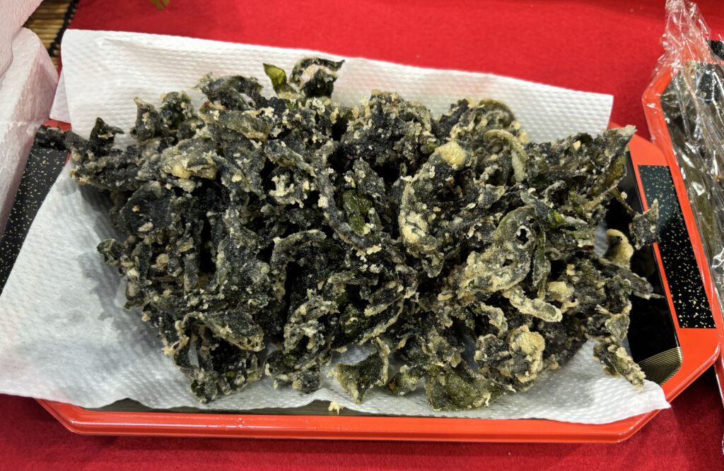 試食を実施した「わかめの唐揚げ」は厚みのあるわかめを、丁寧にカットしわかめの香りを引き立てる唐揚げ粉を付けています。