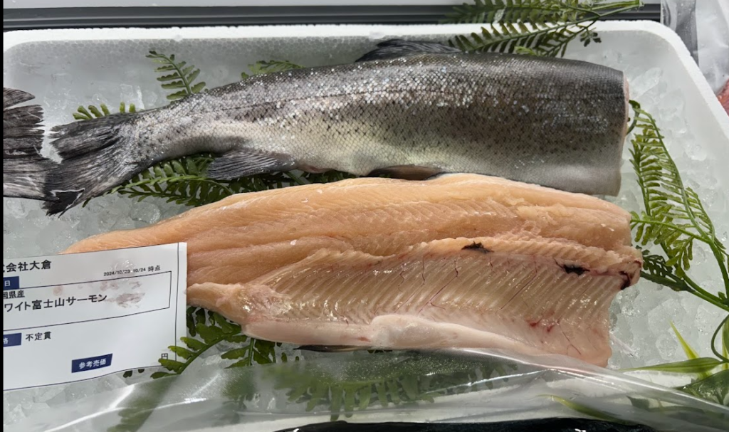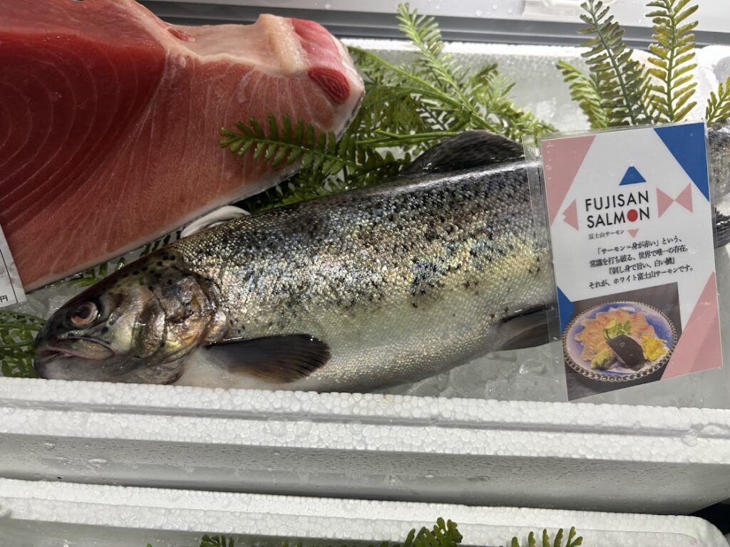 展示方法にもこだわった「富士山ホワイトサーモン」は白いサーモンの身に他で見た事がない、と興味を持たれる方も多くいらっしゃいました。
