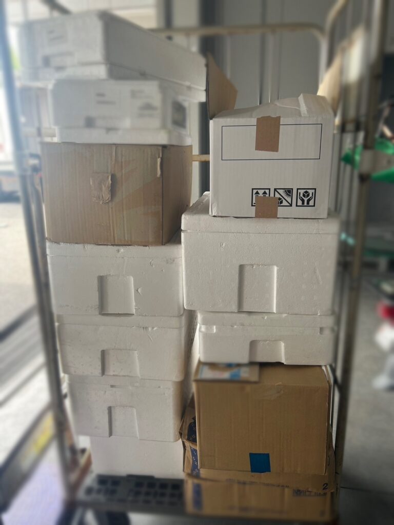 展示会終了後、サンプル商品や展示品など段ボール約12箱(合計480㎏)ご提供いただき、フードバンクTAMA様に寄贈いたしました。